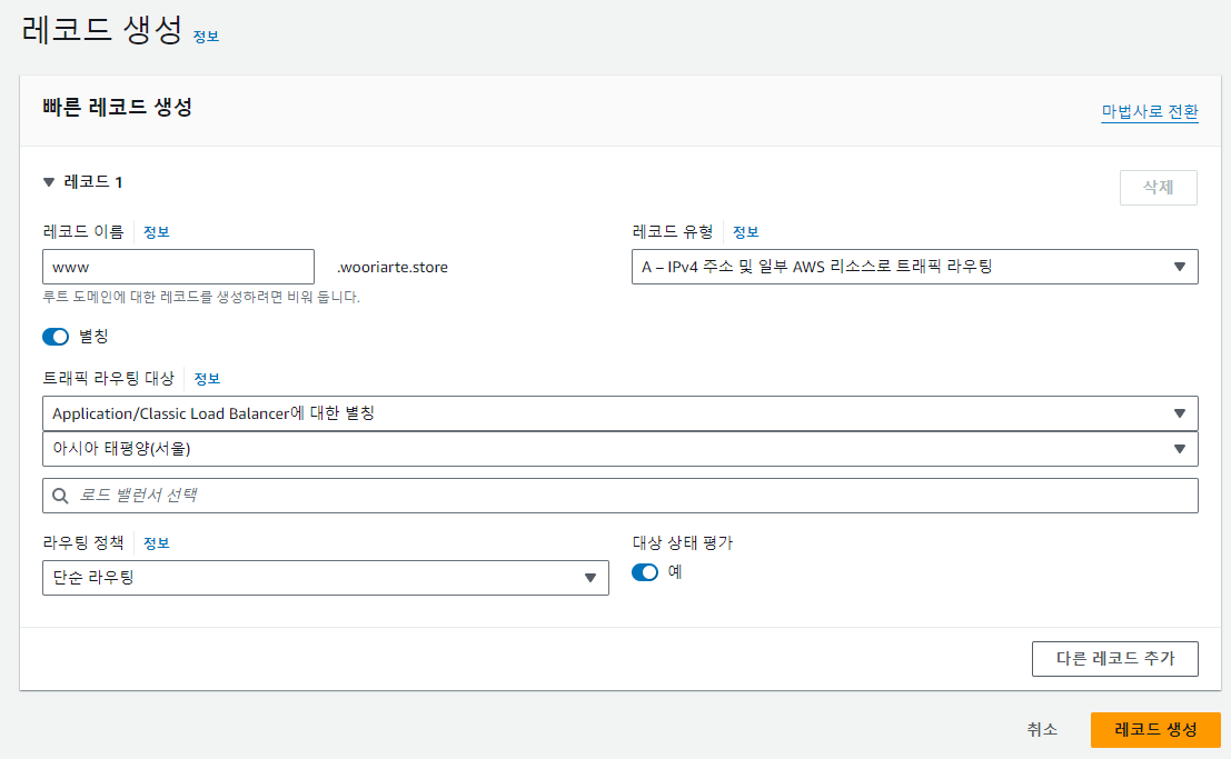 이후에는 레코드를 설정함으로써 다음과 같이 ALB에 연결을 할 수 있다.