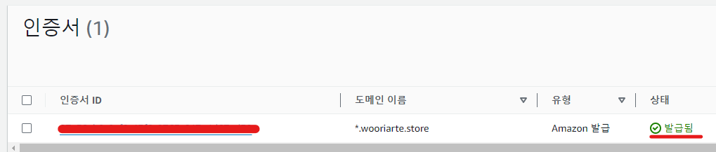 이후 5분 정도 안에 인증서 상태란에 검증 대기 중 이 발급됨으로 바뀔 것이다. (새로고침 해보자!)